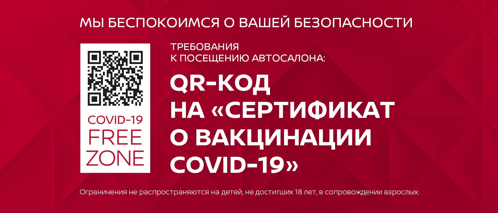 При посещении автосалона обязательно наличие QR-кода о вакцинации COVID-19.
